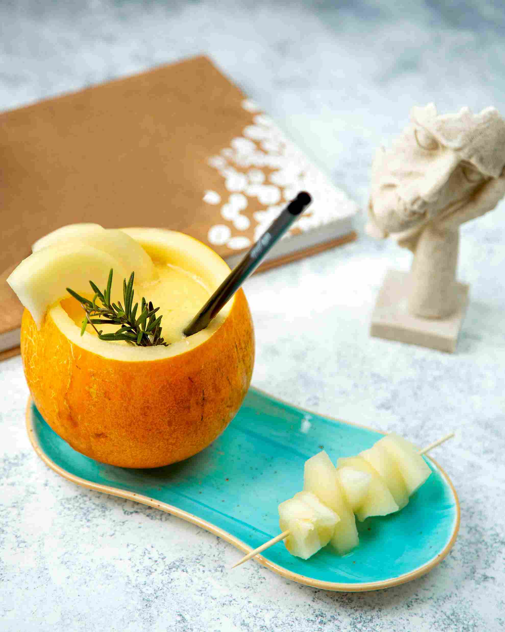 - В блендере смешайте нарезанную дыню, апельсиновый сок, йогурт и мед. Добавьте несколько кубиков льда и продолжайте смешивать до получения гладкой и однородной текстуры.