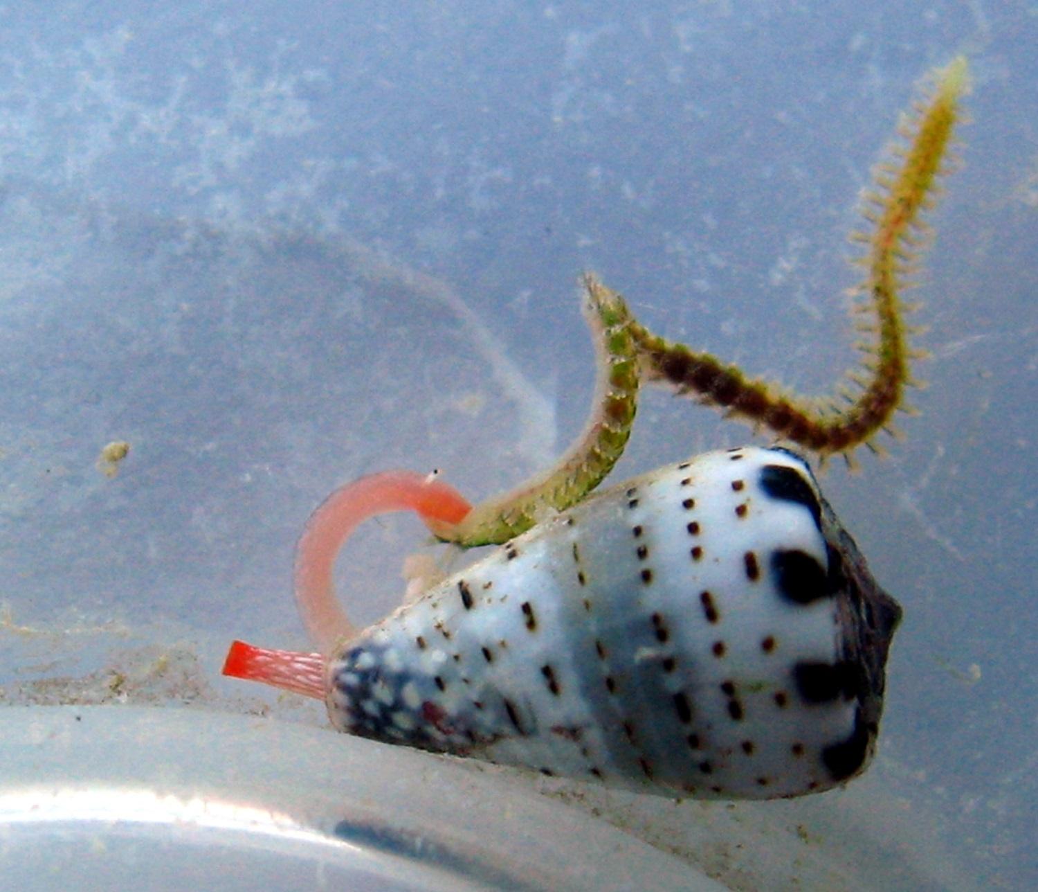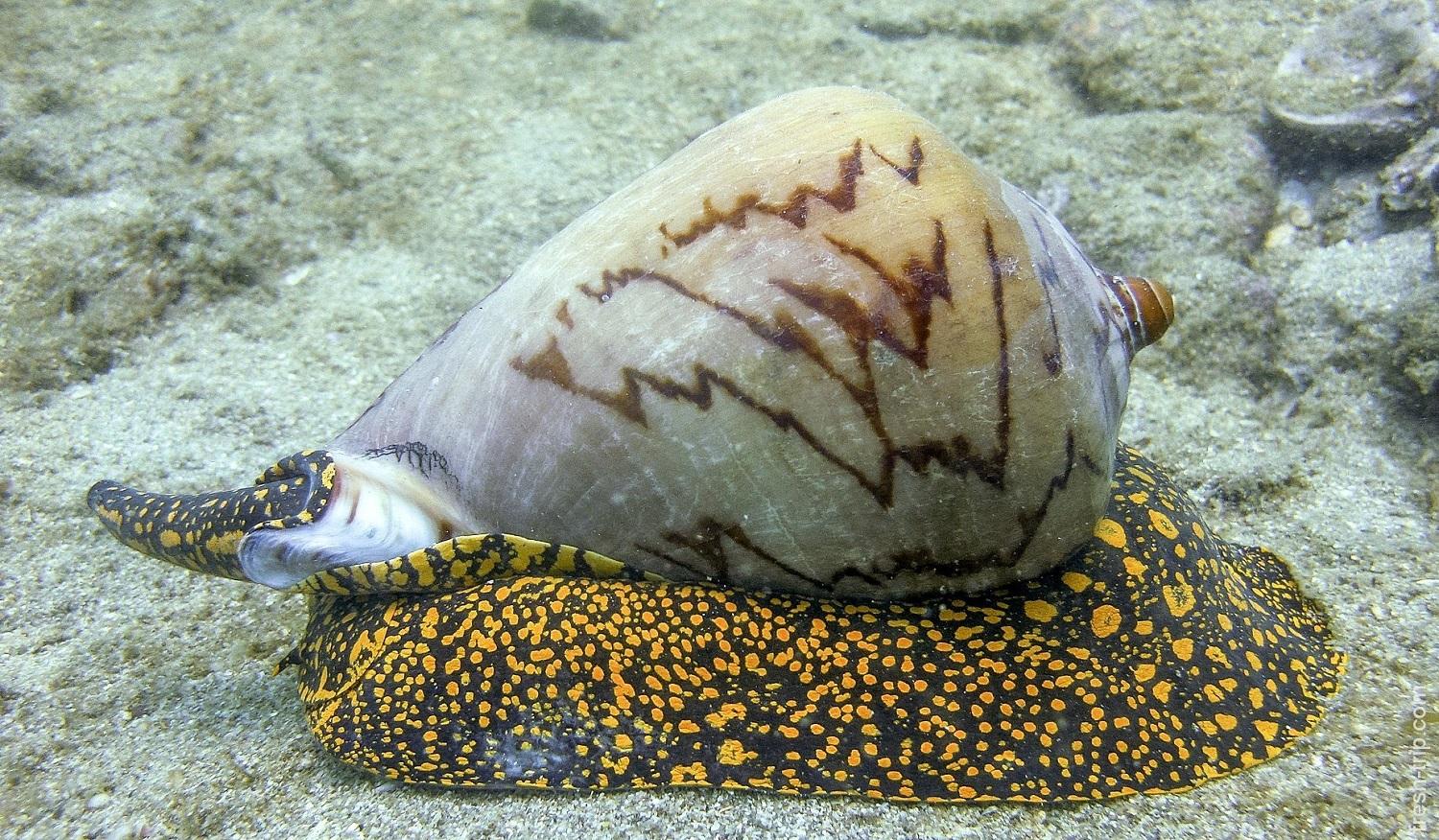 - Моллюски конусы охотятся на рыбу, буквально загарпунивая её своим зубом. При этом они ядовиты, причём настолько, что способны убить человека.