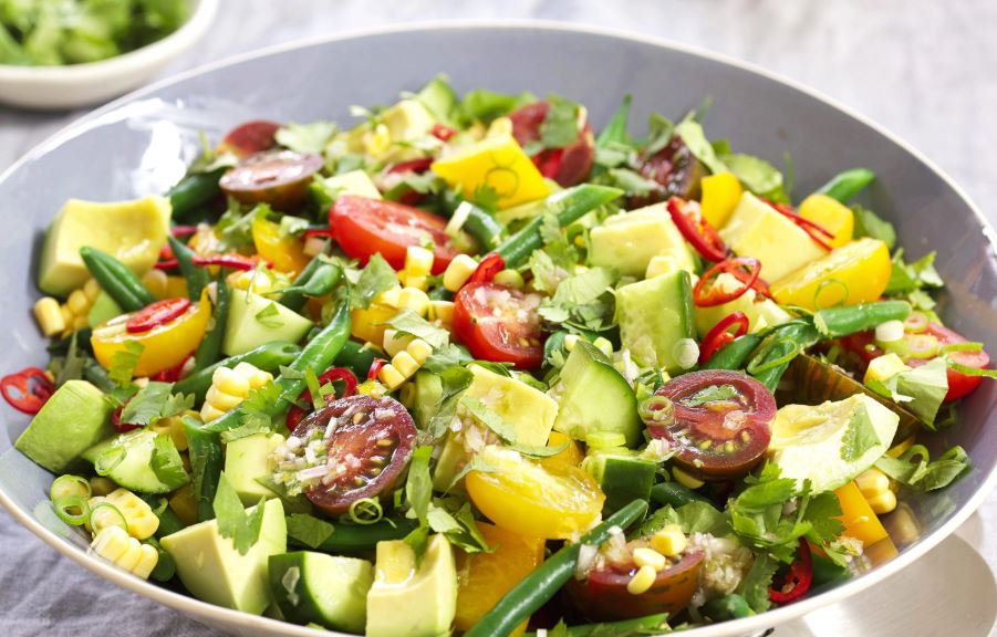 Этот свежий и радующий глаз салатик можно взять с собой на пикник или подать за ужином в качестве сальсы со всевозможными лепешками и крекерами. Хорошо будет сочетаться с мясом.