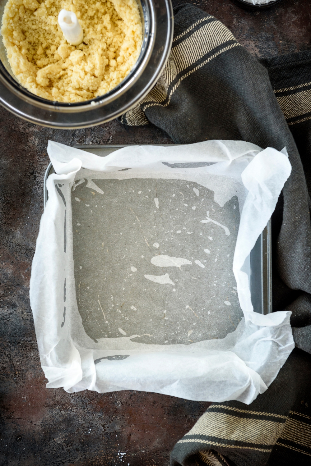 1. Prep work: Line an 8×8-inch baking dish with parchment paper on all sides, grease it with butter or nonstick cooking spray, and preheat the oven to 340°F (170°C).