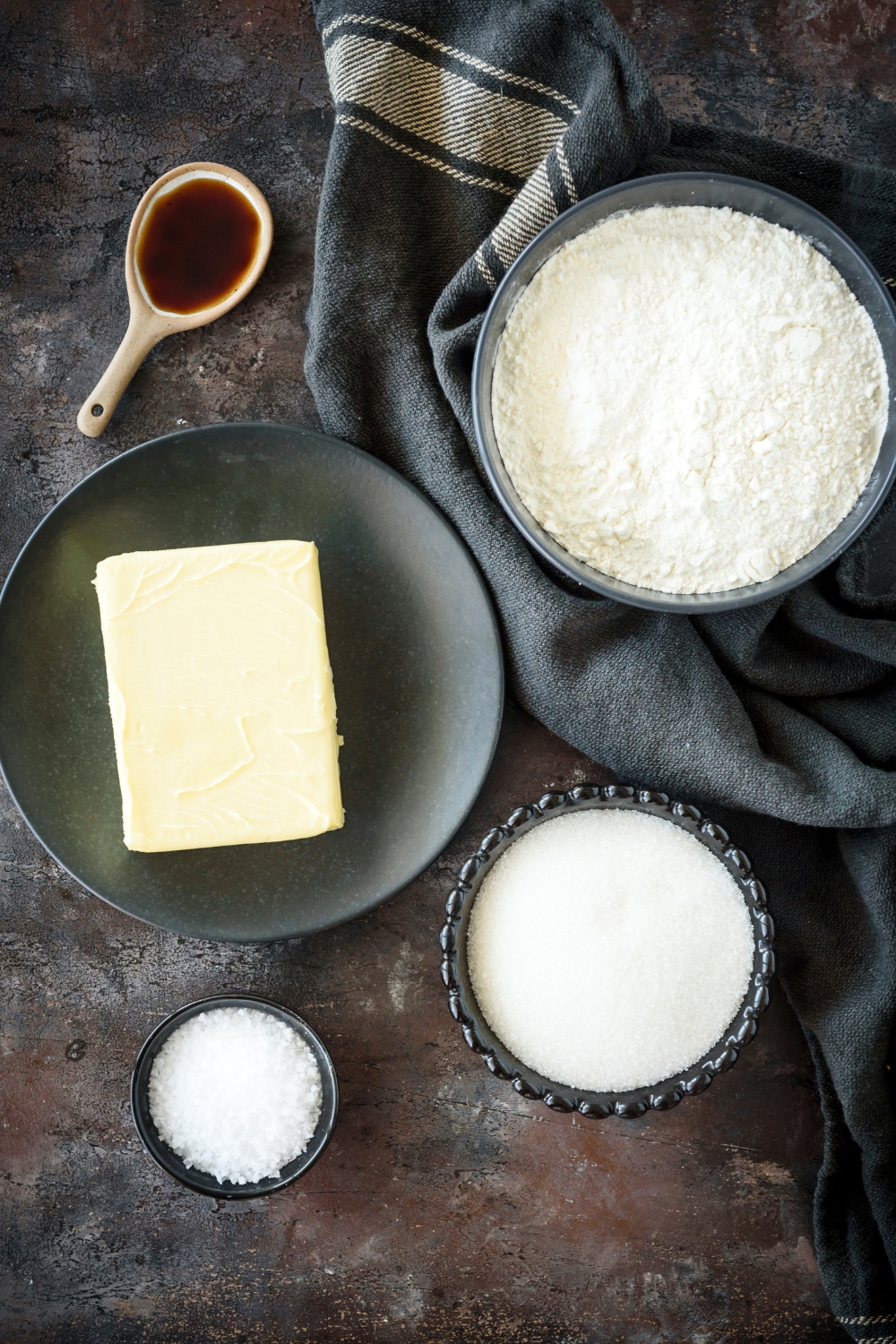 The key to baking these biscuits is a lower oven temperature to help create that melt-in-your-mouth texture. I also find if you slightly underbake them—in terms of shortbread cookies—it creates a somewhat creamy biscuit. But when I say underbake, I still mean that the cookies are fully baked through, but just not as dry as a traditional shortbread cookie.