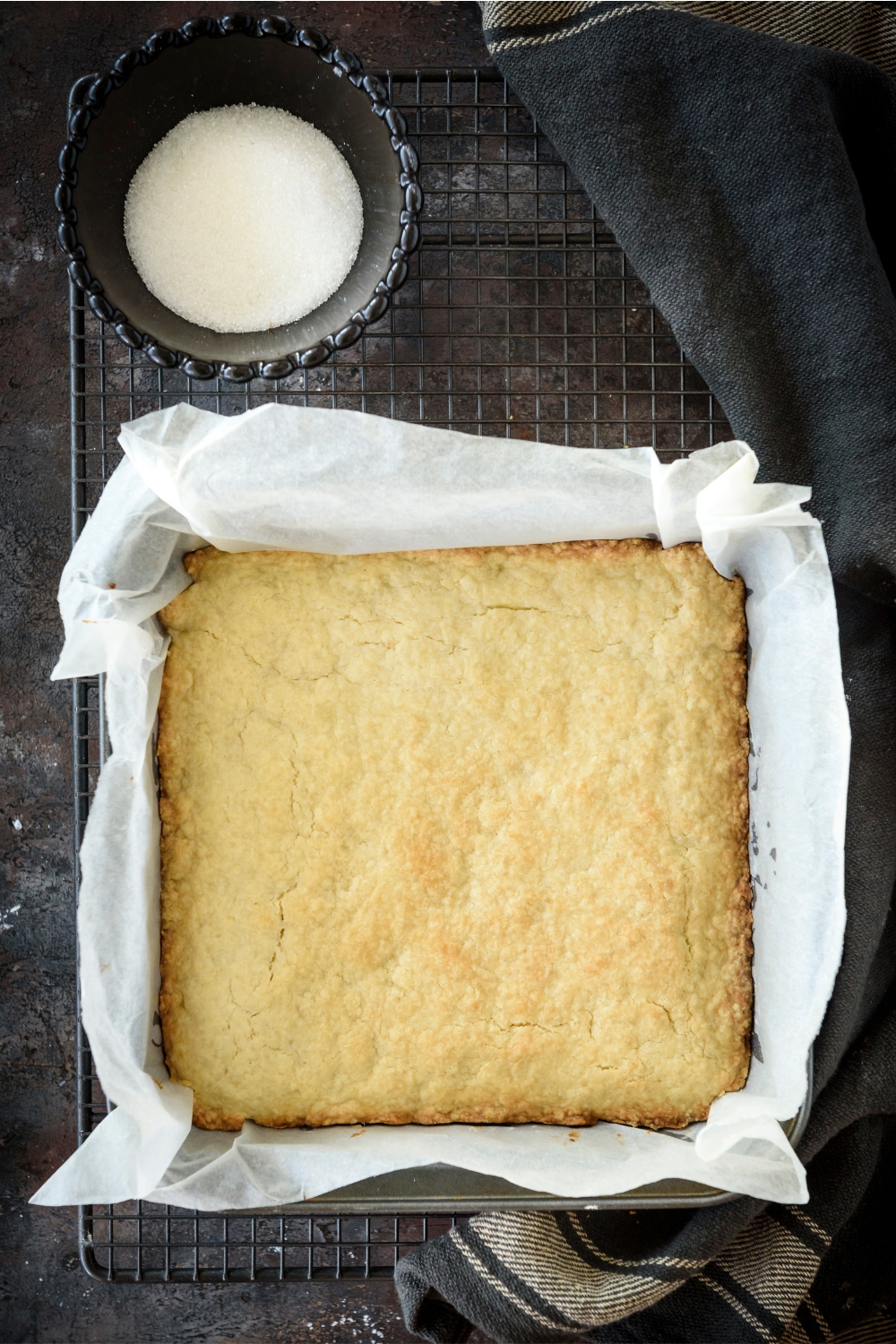 - Bake until edges are just golden brown, about 30 to 35 minutes. Remove from oven, and cool completely in pan, about 1 hour.