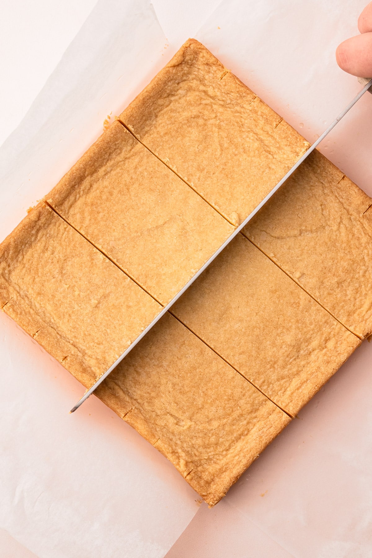 - Use the edges of the parchment paper to lift the biscuits from pan. Cut into16 rectangles.