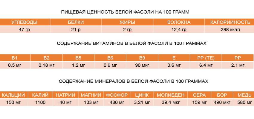 Таблица пищевой ценности белой фасоли на 100 грамм
