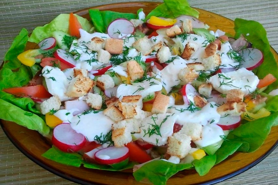 Весенний салат с соусом Цацики — легкая закуска на гриле