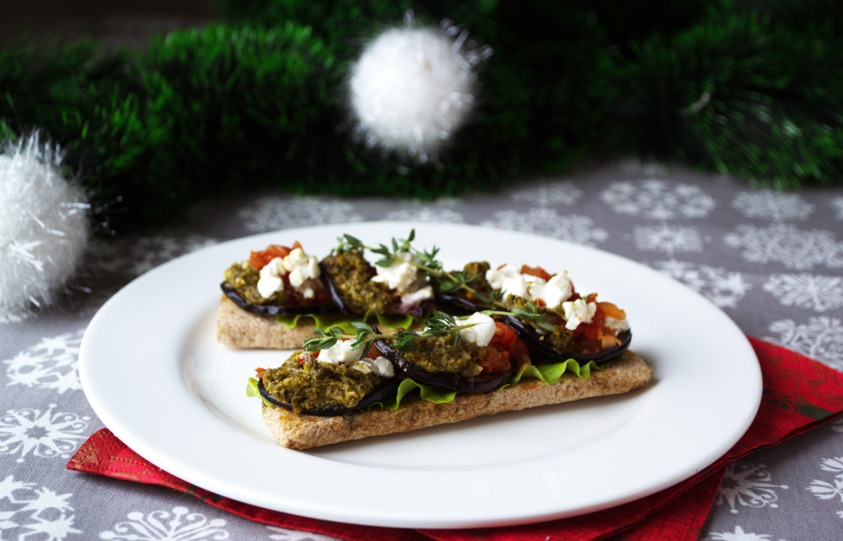 Брускетта с баклажанами и рукколой
