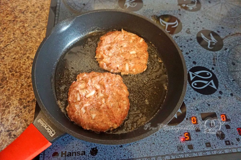Из фарша формуем круглые котлеты, диаметр которых должен быть чуть больше диаметра булочки, а толщина не более 1 см.