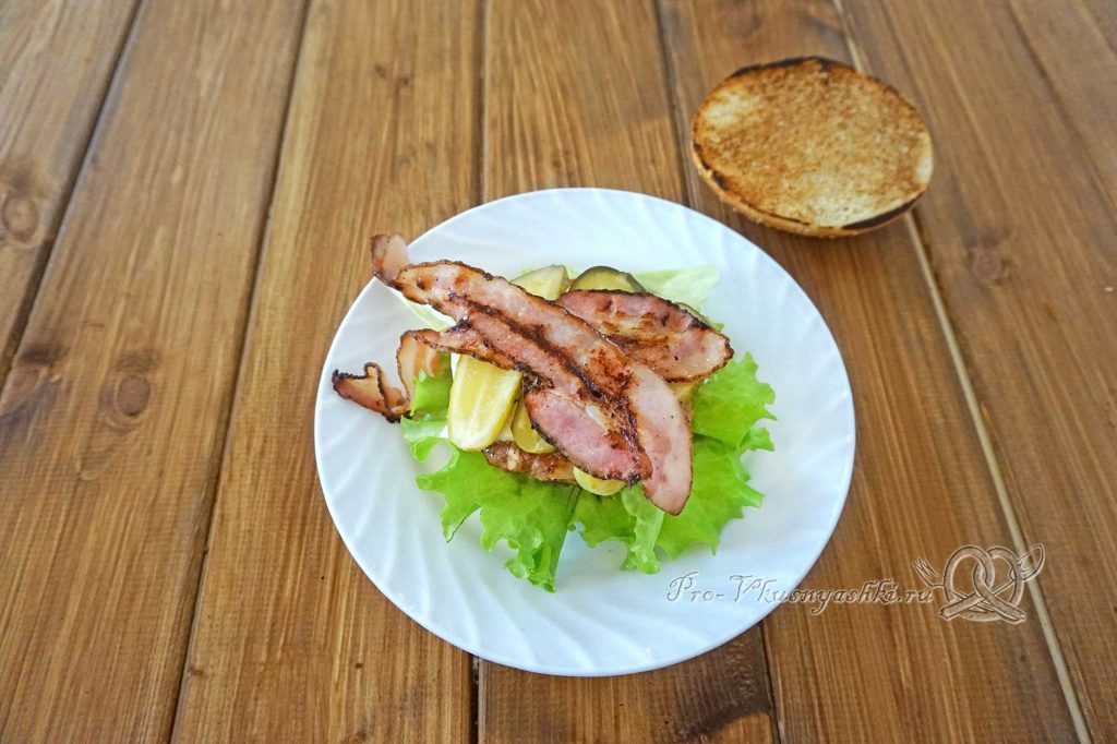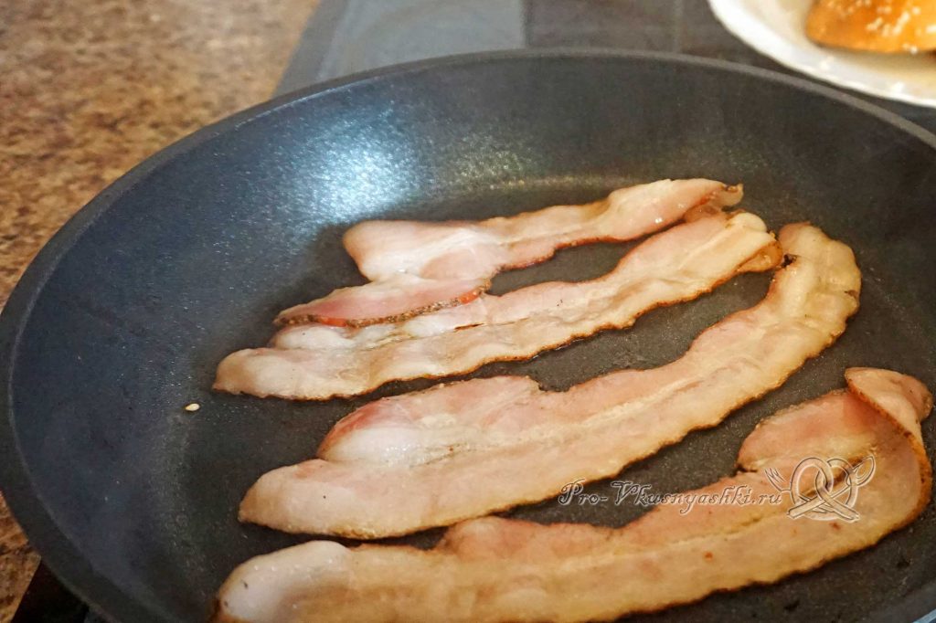 Затем помещаем изюминку нашего блюда — обжаренный бекон.