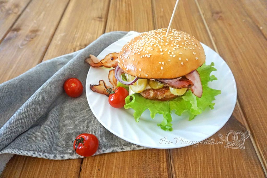 Так вот, блюдо, представленное в сегодняшнем рецепте, в этом плане — настоящий образец. Бургер с беконом готовится совершенно легко, не требует больших затрат времени, экономит деньги и радует невероятными вкусовыми ощущениями.