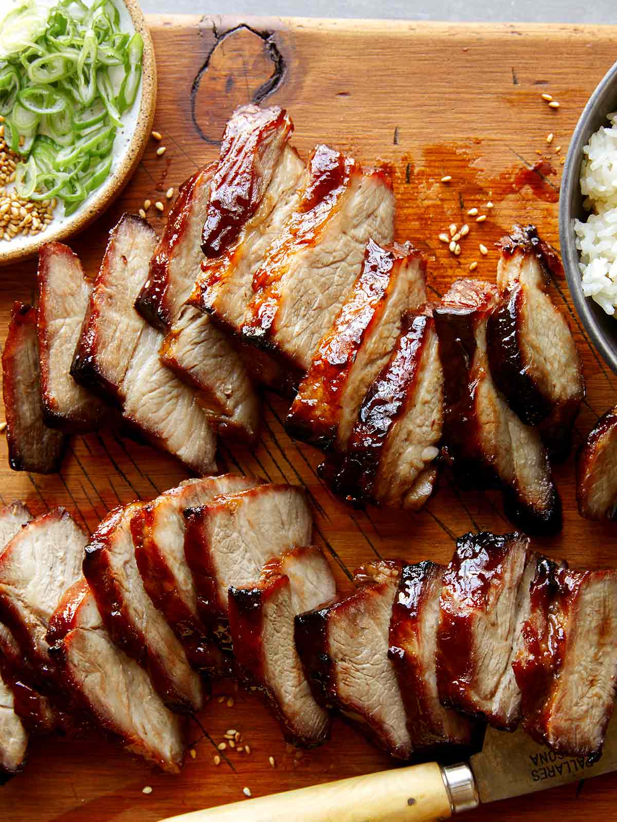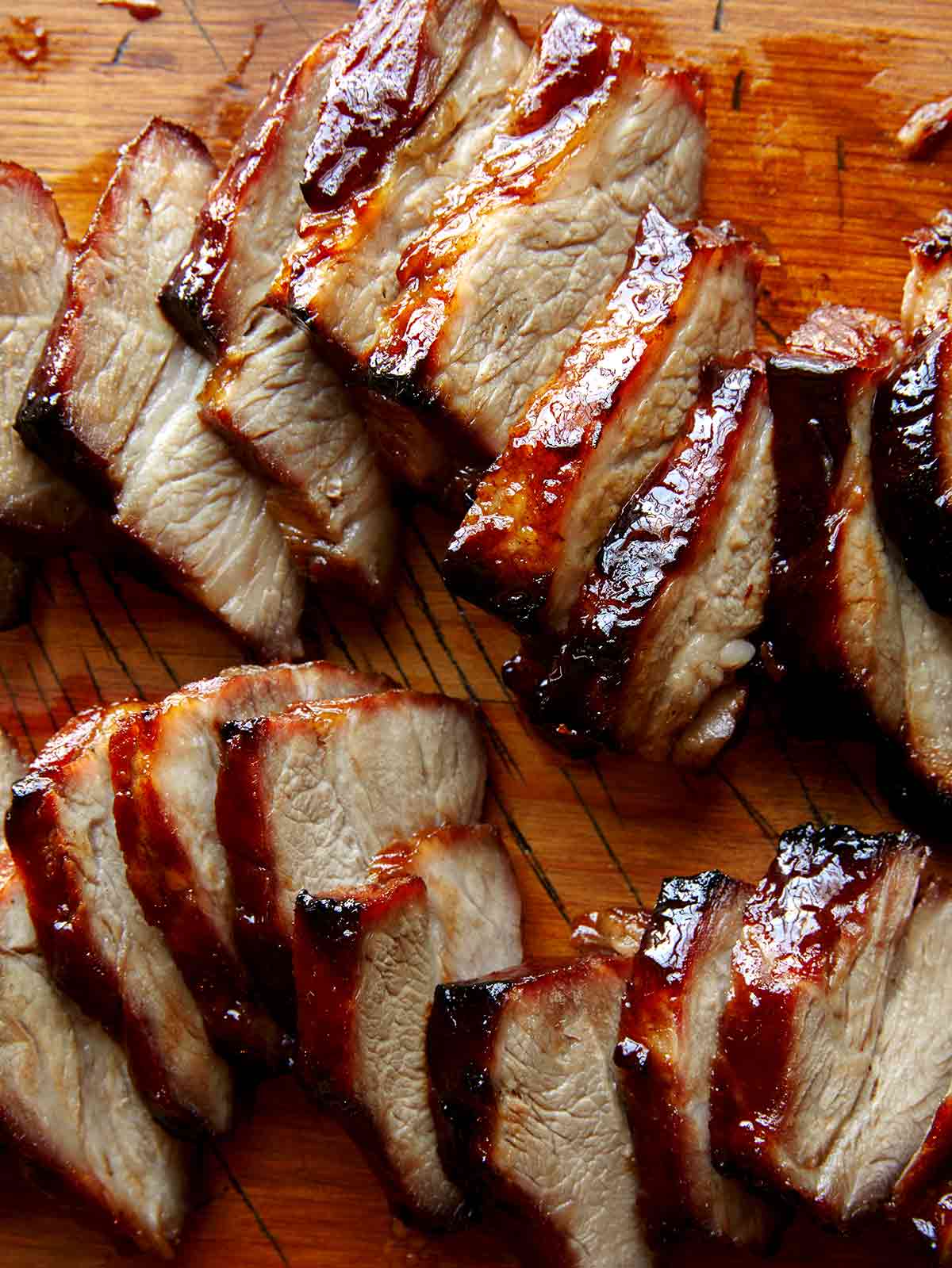 - Transfer to cutting board and rest for 3 to 5 minutes. Slice char siu pork and serve.