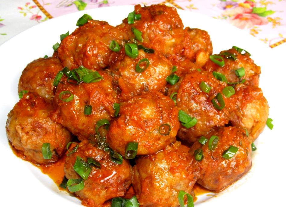 - Снимаем готовые мясные шарики с огня, заливаем соусом и даем настояться.