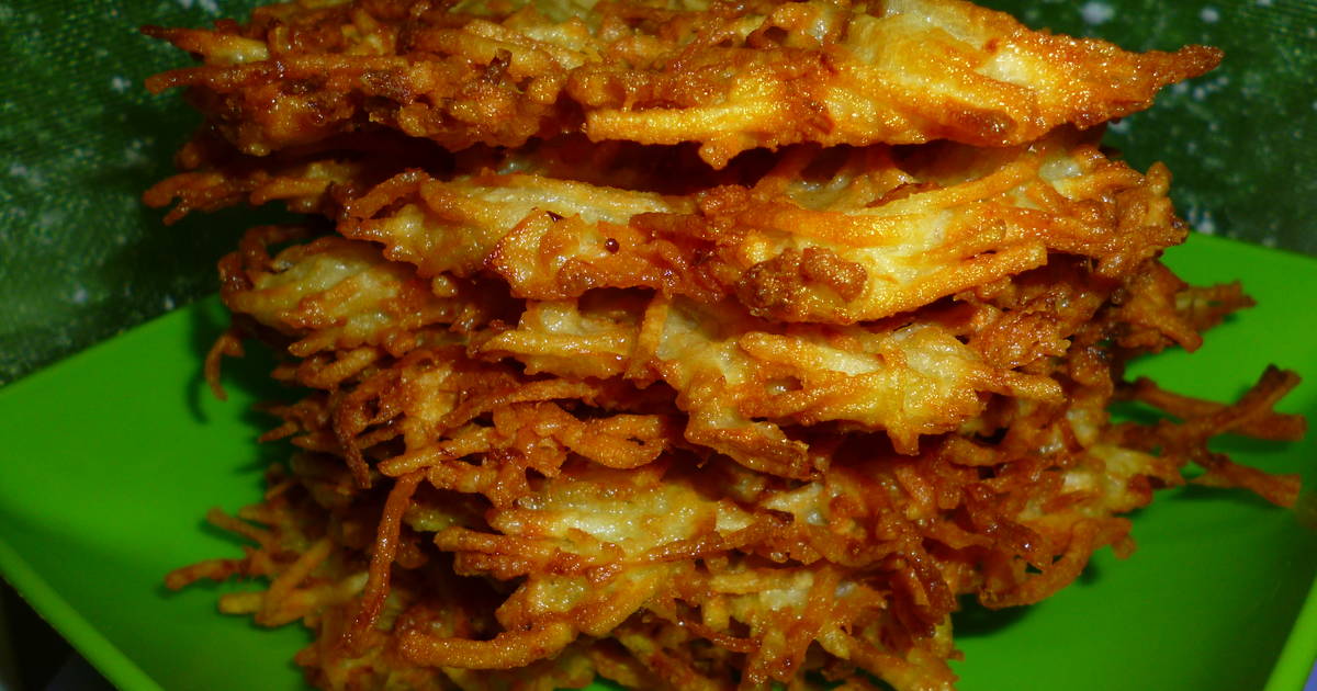 Чистим и трём картошку тонкой соломкой (из неё «ежиные колючки» получаются лучше). Я делала это на тёрке для корейской моркови, но подойдут и всякие разные другие овощерезки, или терка с самыми грубыми ячейками.