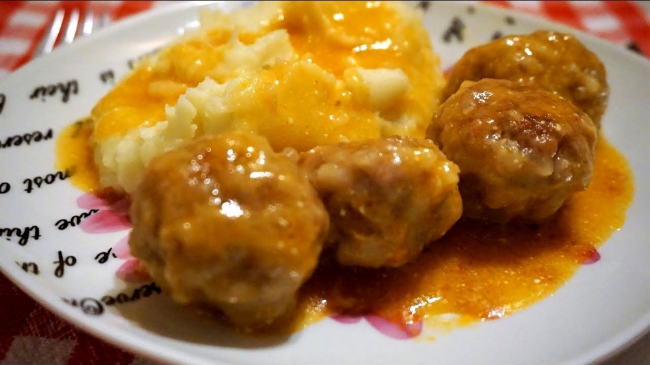 - Подаем соус с тефтелями «Ежики» к картофельному пюре.