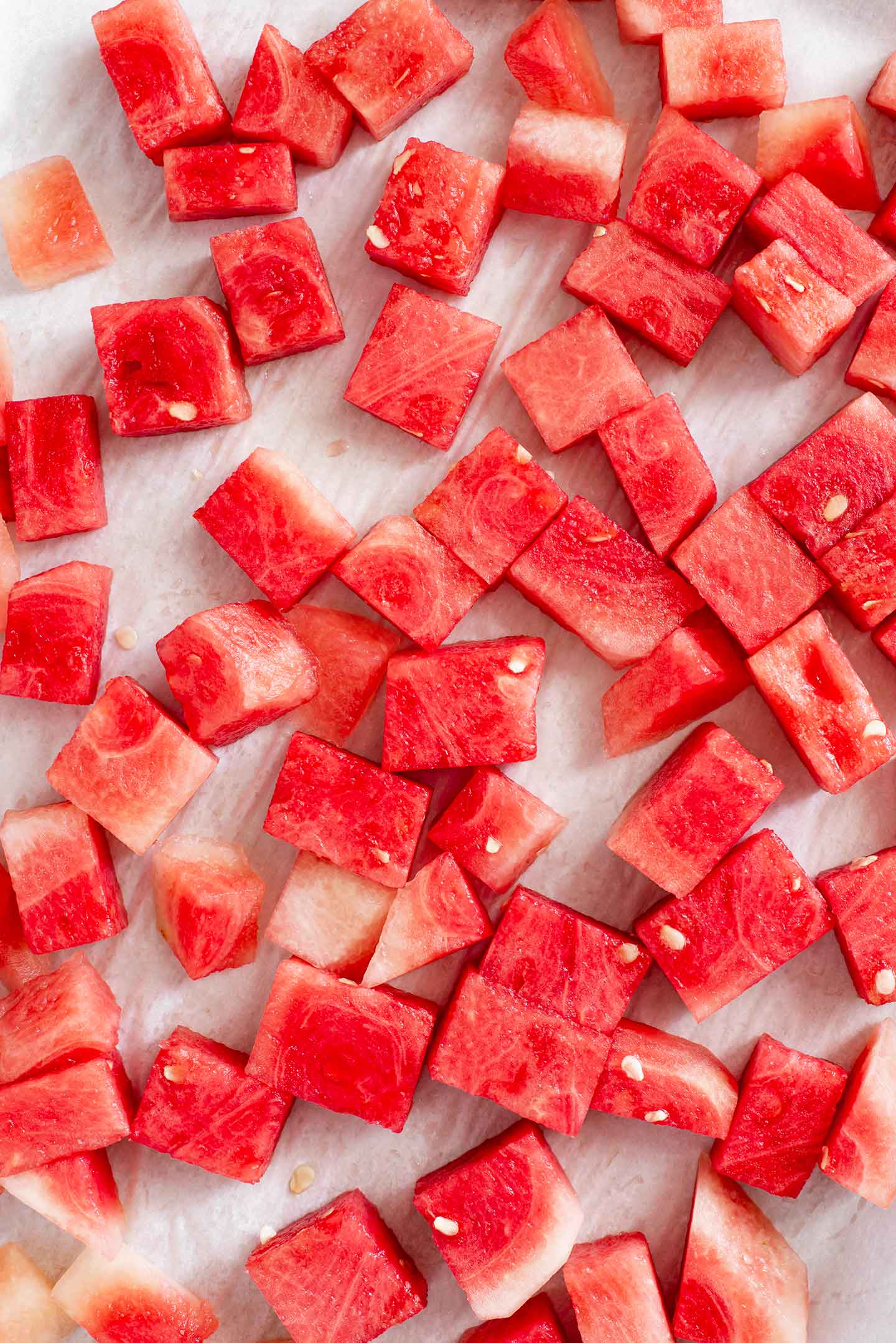 - Leave the watermelon cubes for at least a few hours OR overnight.