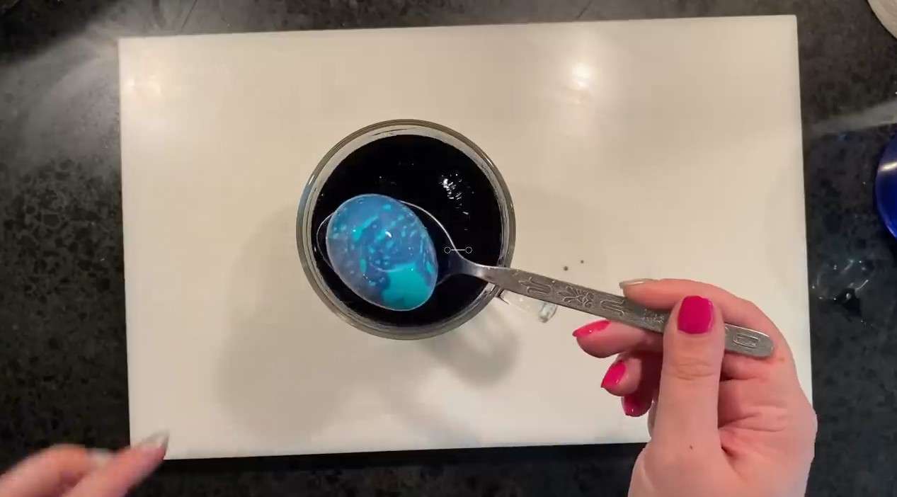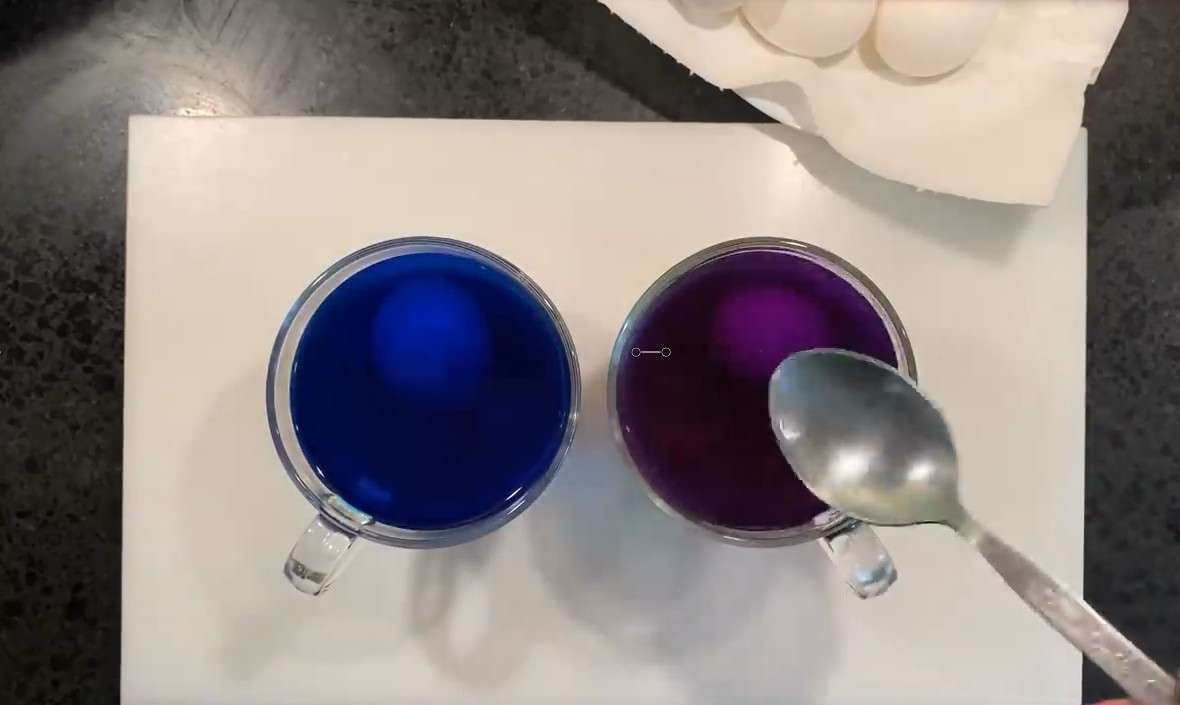 2. Опустить по очереди все яйца в крашенную жидкость на 30-40 сек.