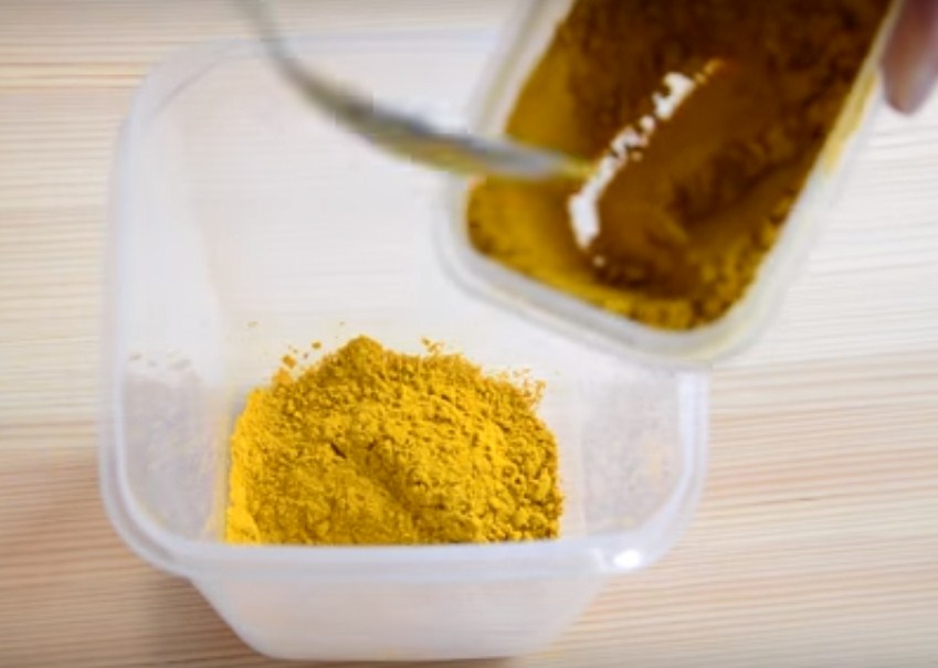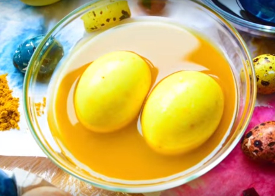 Для окрашивания 5 яиц берем 2-3 ст. ложки куркумы.
