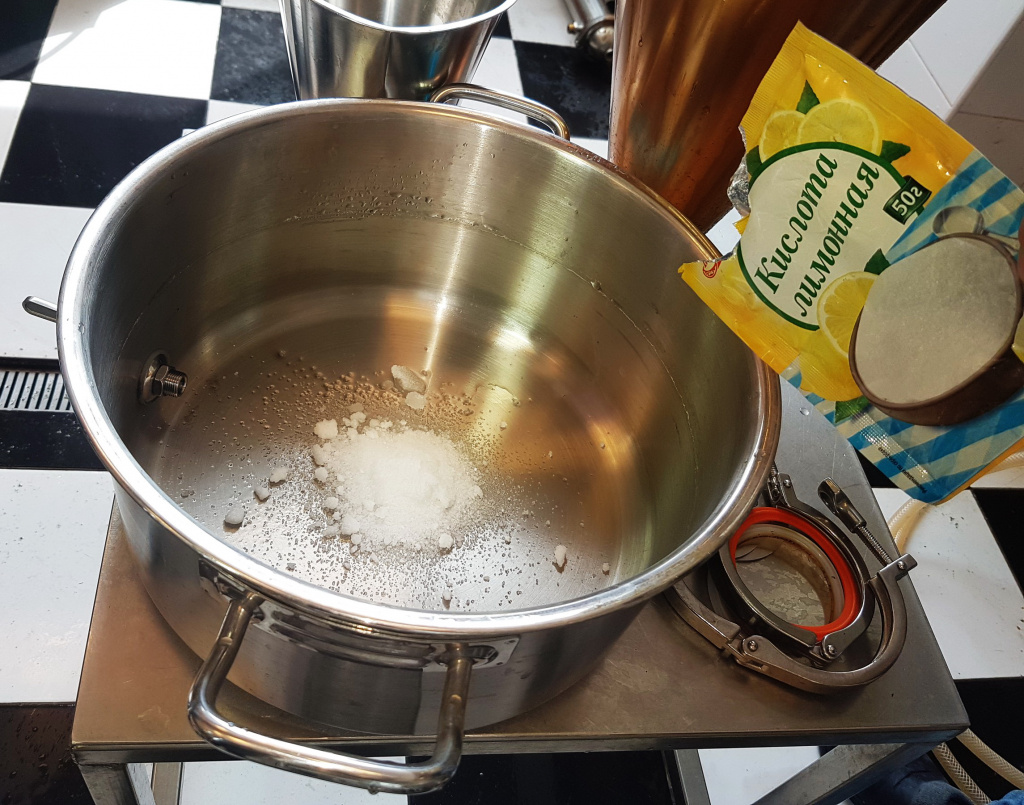- Как только вода вскипит, добавить несколько ложек лимонной кислоты.