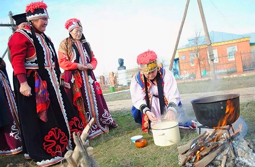 По старинным калмыцким традициям чай был первым блюдом, которое подавалось гостям. Варили его в их присутствии, потому что даже намек на то, что напиток может оказаться несвежим, считался верхом неуважения. При приготовлении чай помешивали половником строго слева направо, согласно солнечному ходу.