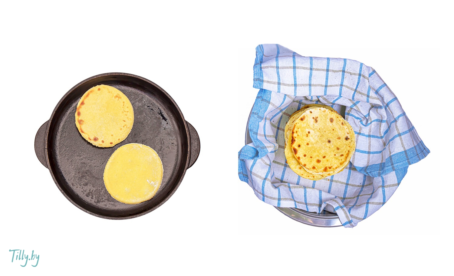 - Подсушенные лепешки сложите вдвое и дайте немного остыть, после остывания они зафиксируют свою форму и не будут разворачиваться