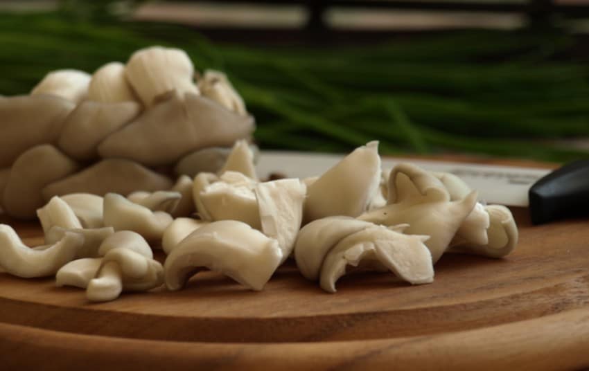 5. Π‘ΠΎΠ΅Π΄ΠΈΠ½ΠΈΡΠ΅ Π³ΡΠΈΠ±Ρ Ρ ΠΌΡΡΠΎΠΌ ΠΈ Π΄ΠΎΠ±Π°Π²ΡΡΠ΅ ΠΊ Π½ΠΈΠΌ ΠΎΡΠ²Π°ΡΠ΅Π½Π½ΡΡ ΠΏΠ°ΡΡΡ. ΠΡΠ΅ ΠΊΠΎΠΌΠΏΠΎΠ½Π΅Π½ΡΡ ΠΎΠ±ΠΆΠ°ΡΠΈΠ²Π°ΠΉΡΠ΅ Π²ΠΌΠ΅ΡΡΠ΅ 5-7 ΠΌΠΈΠ½ΡΡ.