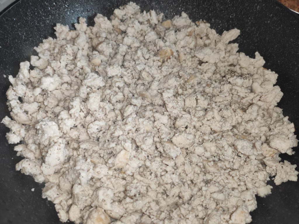 - Содержимое емкости жарится до полной готовности фарша. Смесь солится.