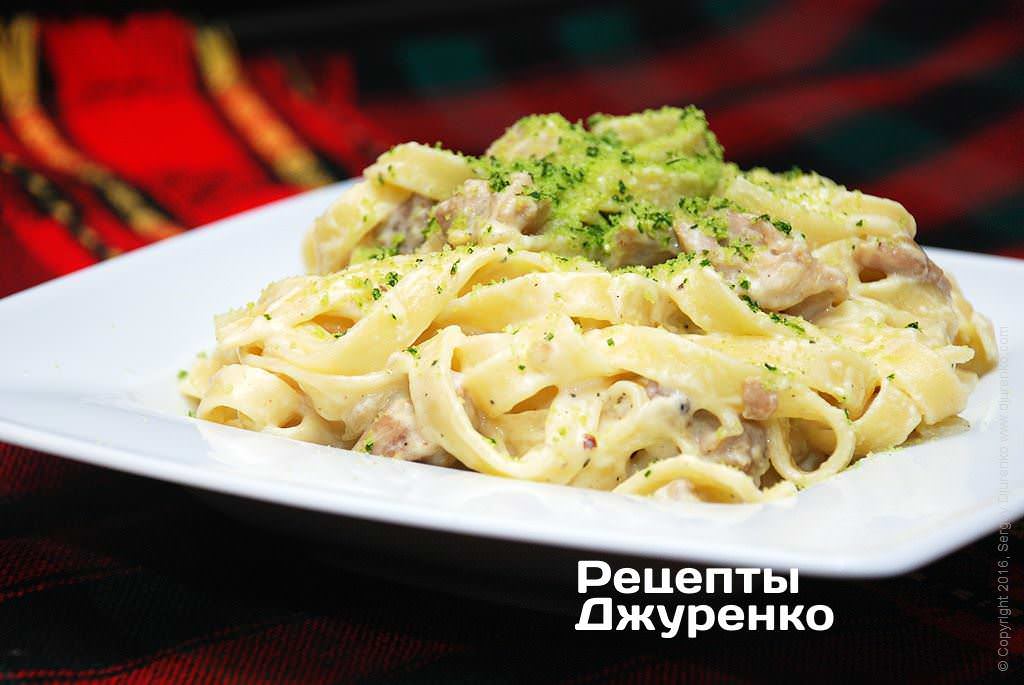Добавить соус Альфредо– Это сделает блюдо супер сливочным и нежным.