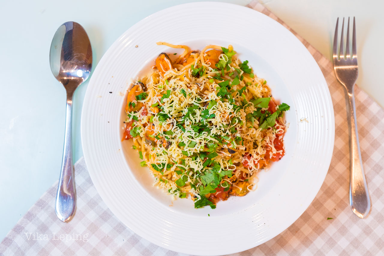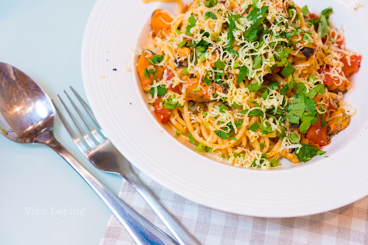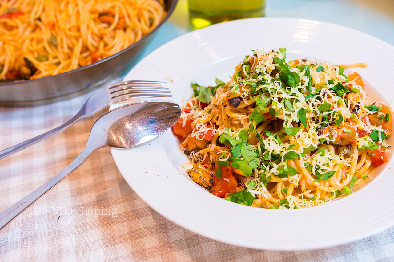 Краткий рецепт: итальянская паста с мидиями в томатном соусе