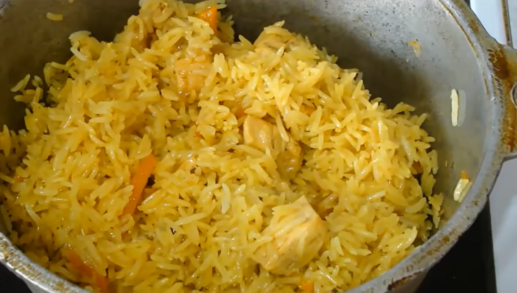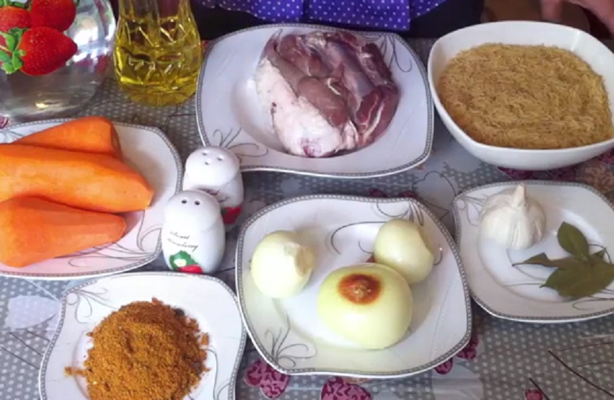 Готовится узбекское блюдо из строгих пропорций риса, мяса и моркови. Остальные компоненты уменьшают и увеличивают по вкусу.