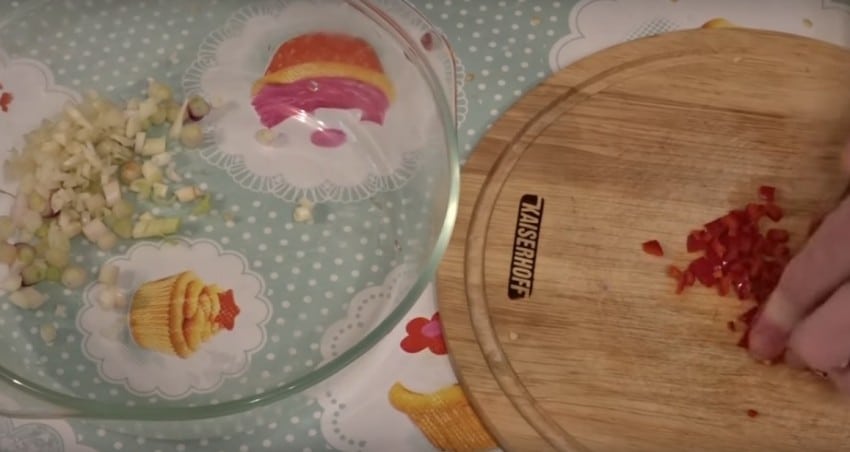 - Мелко нарезать заранее заготовленные и избавленные от косточек горсти оливок и маслин.