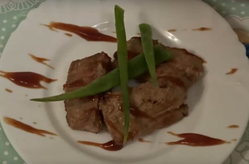 - Стейки выкладываются на подходящее блюдо и поливаются глазурью. Можно подавать!