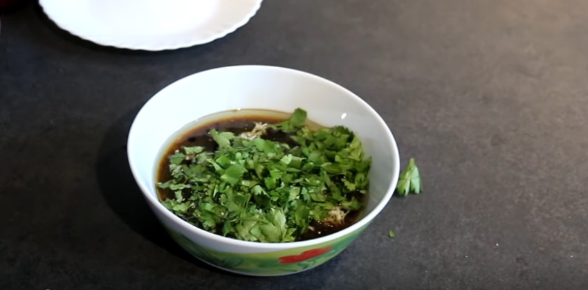 - Мелко нарезаются веточки кинзы и укропа, смешанные друг с другом.