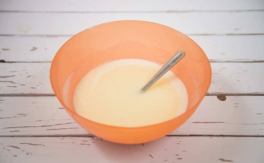 В растительном масле обжарьте до золотистого цвета нарезанный небольшими кубиками лук. Остудите и соедините с кислым молоком, яйцом, солью и перцем. Добавьте по желанию около 0,5 ч. л. сахара для баланса вкуса.