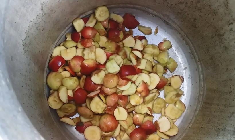 - Промойте, разрежьте на части плоды, удалите сердцевину.
