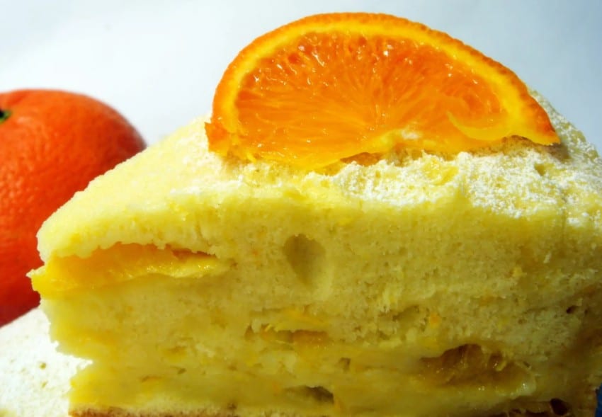 Готовая шарлотка с апельсинами покрывается светло-коричневой корочкой и легко «отклеивается» от бортиков формы.