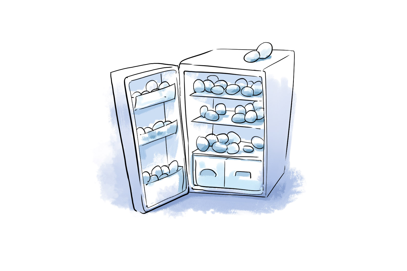 Удобные яйца GROVO не занимают много места в холодильнике, поскольку бутылки объемом 0,5 и 0,9 литра можно поставить в отсек на дверце, где обычно хранится молоко. Яйцо в бутылке не бьется и гораздо удобнее для хранения, чем куриные яйца в хрупкой скорлупе, да и срок годности у них больше — 56 суток вместо 25, как у обычных столовых яиц. После того как вы откроете бутылку, она должна быть использована в течение пяти дней.
