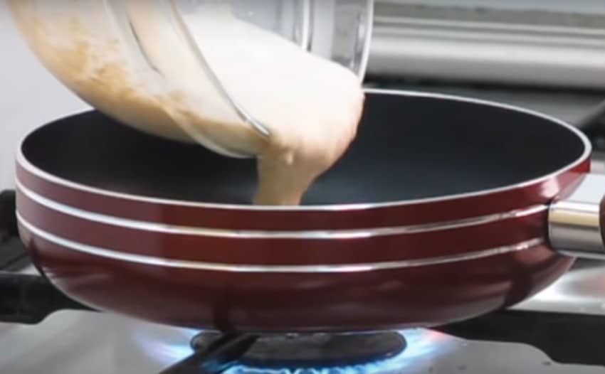 Сковороду предварительно можно слегка смазать топленым или другим пригодным для жарки маслом. Качественное и проверенное антипригарное покрытие позволяет пропустить этот шаг.