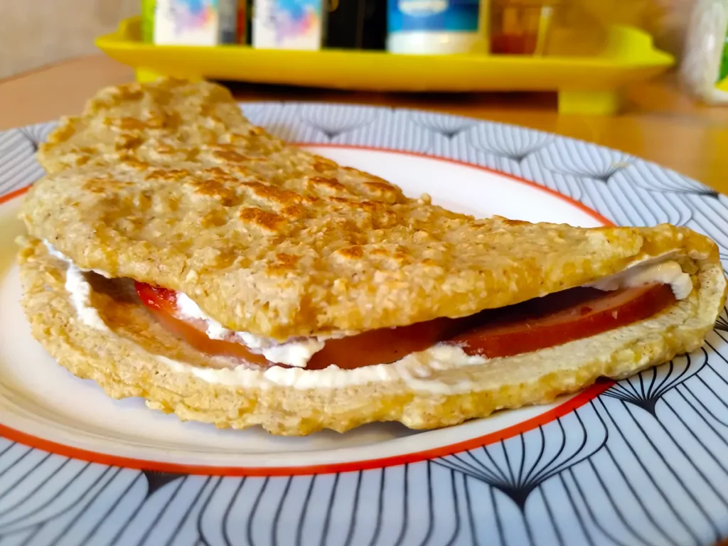 - Перекладываем овсяноблин на тарелку и займёмся начинкой.
