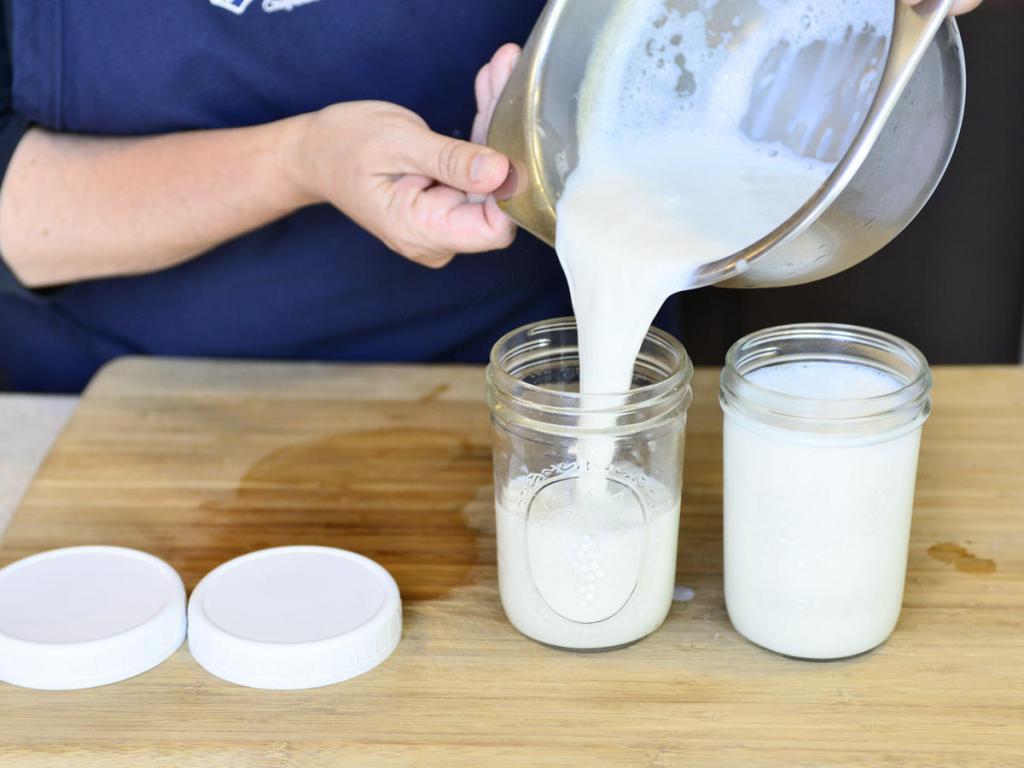 Молоко необходимо вскипятить, а после остудить примерно до 40°С и добавить предварительно растворенную в небольшом количестве молока закваску. Подготовленную массу разлить по стеклянным емкостям и герметично закрыть, накрыть полотенцем и оставить на 14 часов, после чего поместить на 3 часа в холодильник.