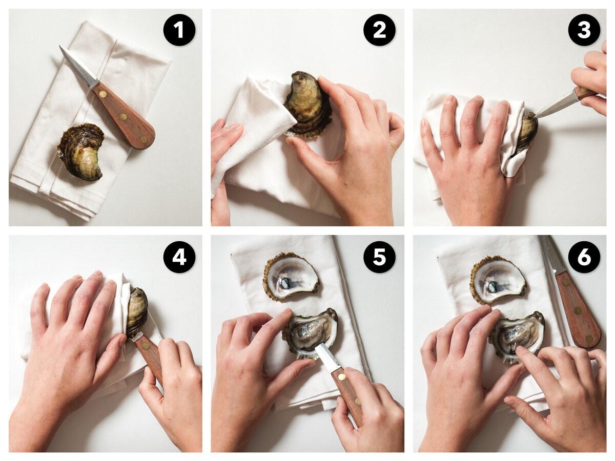 Данный секрет следует применять при подаче в ресторане устриц, находящихся в закрытой раковине. Вместе с ракушками всегда подают специальный (устричный) нож, с помощью которого удается быстро распахнуть раковинные створки. При этом нож вставляют внутрь раковинной смычки между створками, немного отступив от края. Затем инструмент проворачивают до образования щелчка. Желательно нож держать под наклоном, что способствует сохранению целостности устричного тела.