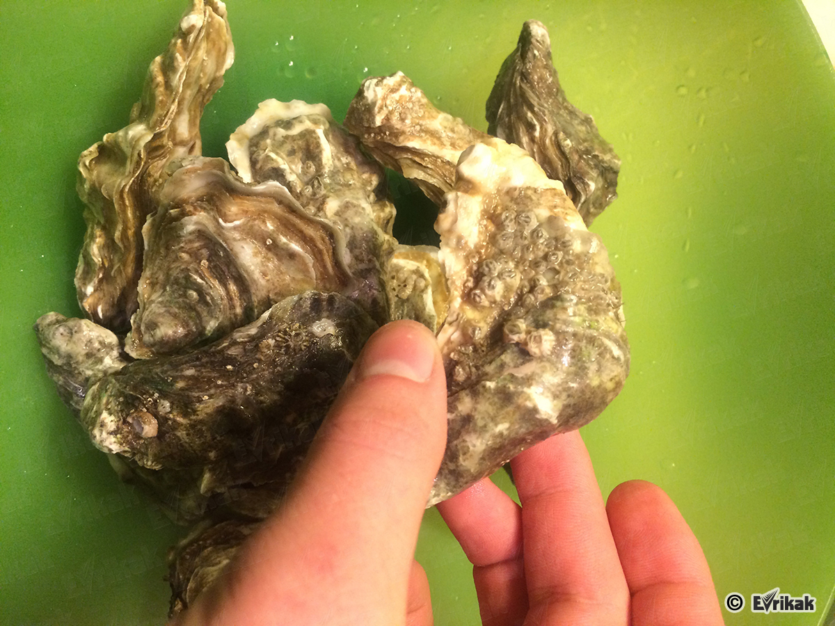 Покупные устрицы рекомендуется тщательно промыть непосредственно перед употреблением, чтобы избежать влияния пресной воды, которая может повлиять на их вкус. Для очистки раковин обычно используется щетка, чтобы удалить все загрязнения, песок и даже возможные водоросли. После этого надевают перчатки и, используя толстый и крепкий нож, открывают раковины. Эти морепродукты обычно имеют очень прочные и плотные раковины. С помощью ножа мясо разделяют и разрезают мышцу, которая удерживает створки раковины