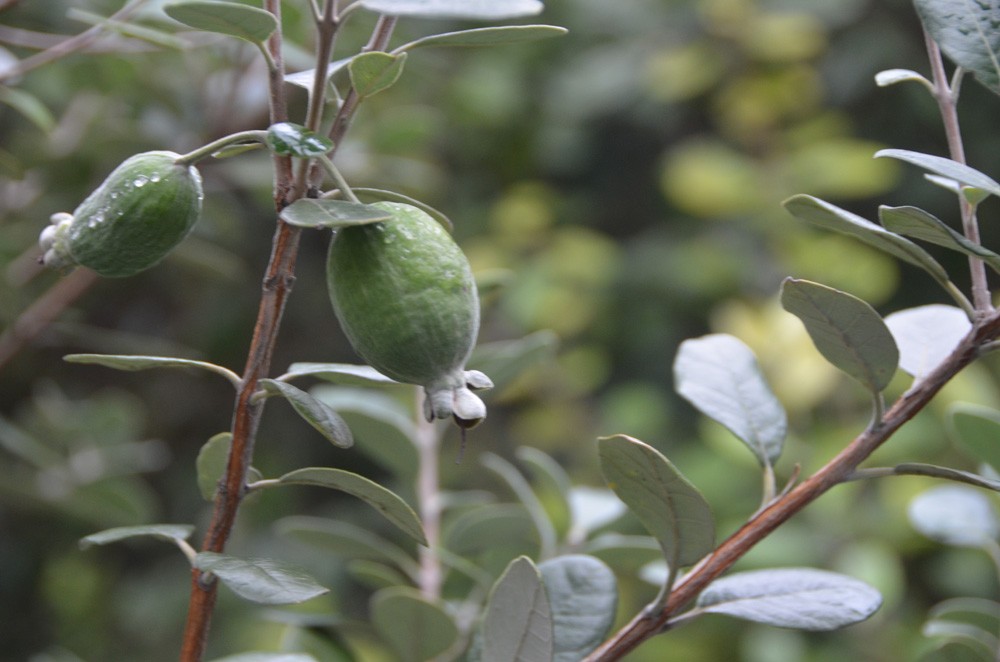 Фейхоа — кустарник или небольшое дерево. Благодаря селекционерам выведены сорта с крупными и мягкими плодами. Цветение приходится на май-июнь. Плоды фейхоа — ягоды с зеленой кожицей, чаще бугристой, но иногда гладкой. Мякоть — светлая и желеобразная.