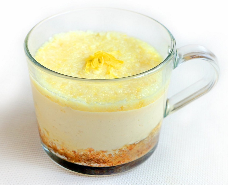 - Влейте сливочную массу поверх крошки печенья и отправьте чашечку в микроволновку.