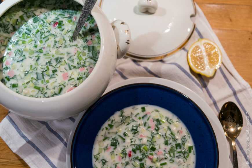 Рецепт самой вкусной окрошки со свежим огурцом и куриной грудкой без картофеля