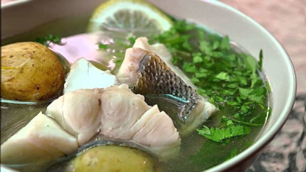 Варят ее из потрошеной мелкой рыбы с удаленными жабрами. Рыбу тщательно промыть в проточной воде и варить в кипятке 20 минут, удаляя пену. Бульон процедить и сварить в нем вторую порцию мелкой рыбы. Снова процедить бульон, добавить перловую крупу, картофель, лук и варить до полуготовности крупы. Посолить, положить специи, довести до кипения и положить нарезанную кусками крупную рыбу. Через 10 минут рыбный суп готов.