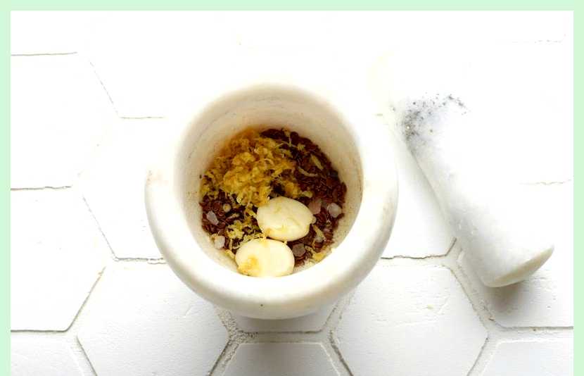 Пока овощи варятся на пару, можно сделать к ним соус-заправку. Для этого размять в ступке 2 зубчика чеснока, крупную cоль, семена льна, черный перец горошком и цедру 1 лимона. Разогреть на сковороде 3 столовые ложки растительного масла, лучше оливкового, и обжарить смесь из ступки буквально полминутки. Прекрасная заправка для овощей на пару готова.