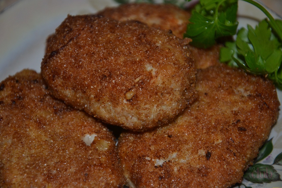 - Жарятся котлеты как самые обычные: формируются в ладошках шарики и обмакиваются в муке. Котлеты жарятся на растительном масле