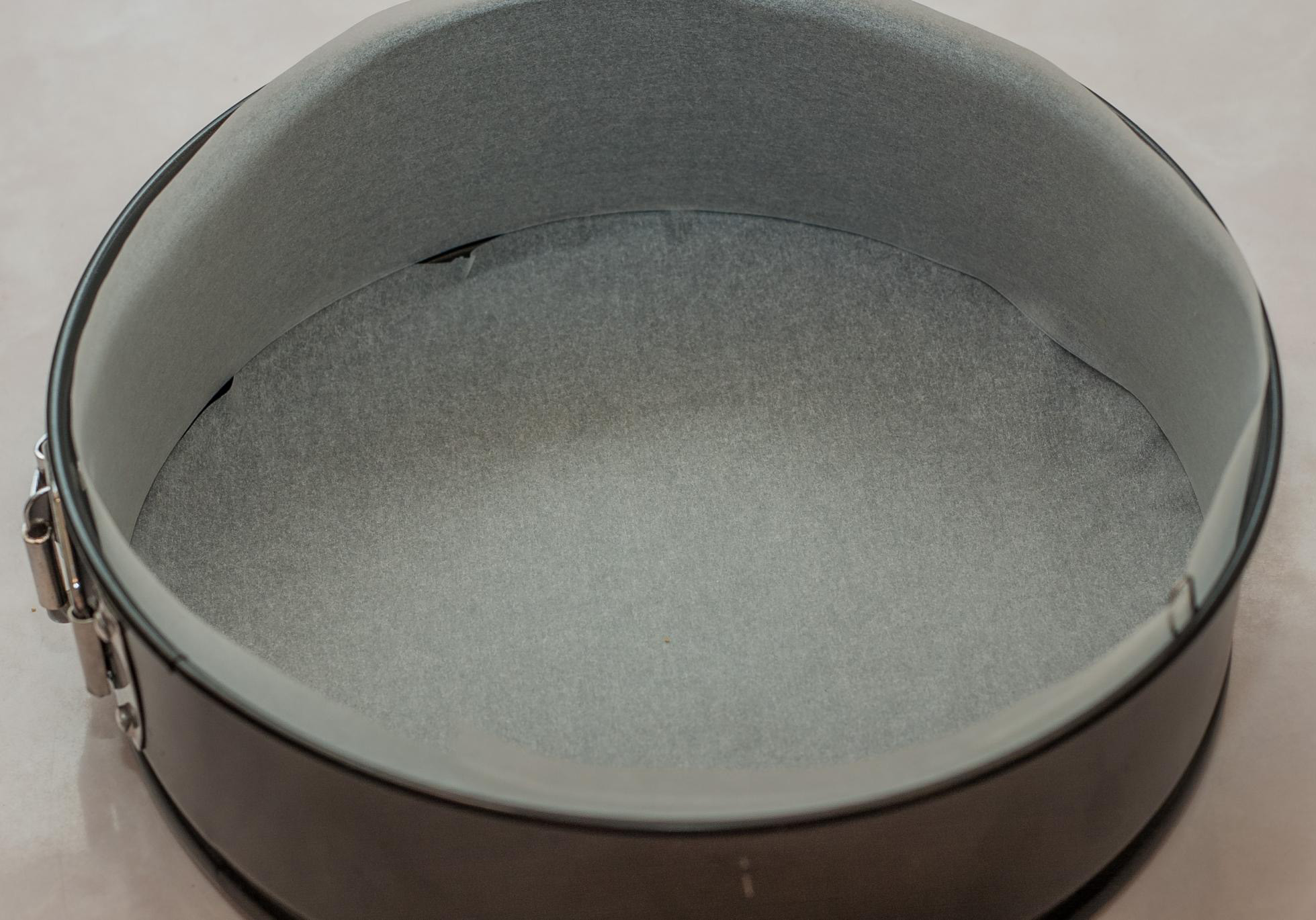 Чтобы тесто не вылилось из формы разместите на дно тары пергамент или фольгу и, только потом зафиксируйте съемную часть.