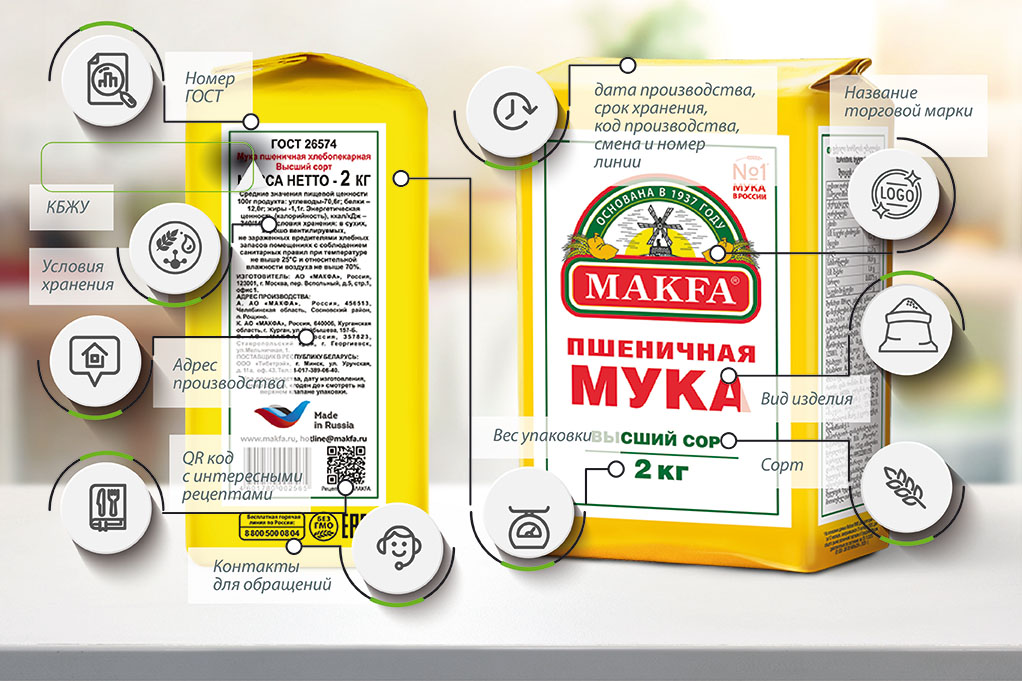 Мука пшеничная MAKFA. Расшифровка знаков на упаковке.