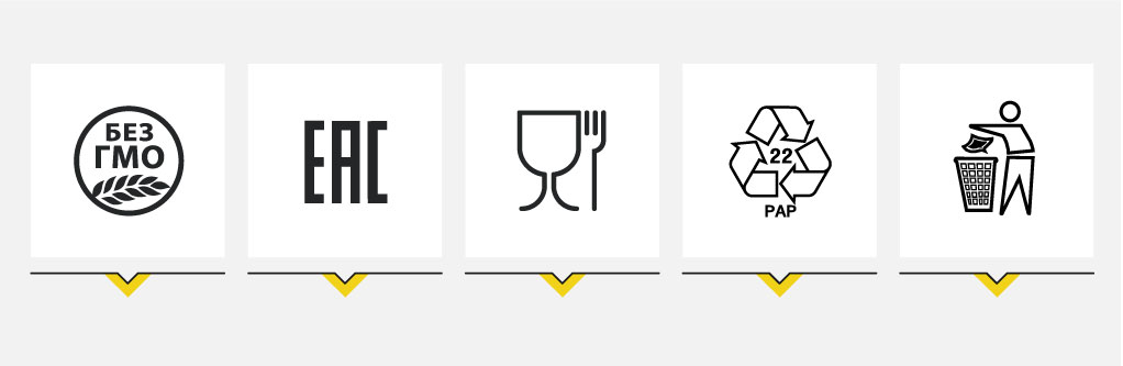 Маркировка ЕАС. Обязательная маркировка, информирующая покупателя о соответствии товара Таможенному регламенту Евразийского Экономического Союза. Этот знак означает, что мука соответствует требованиям международной безопасности стран-участников Союза и может продаваться на их территории.