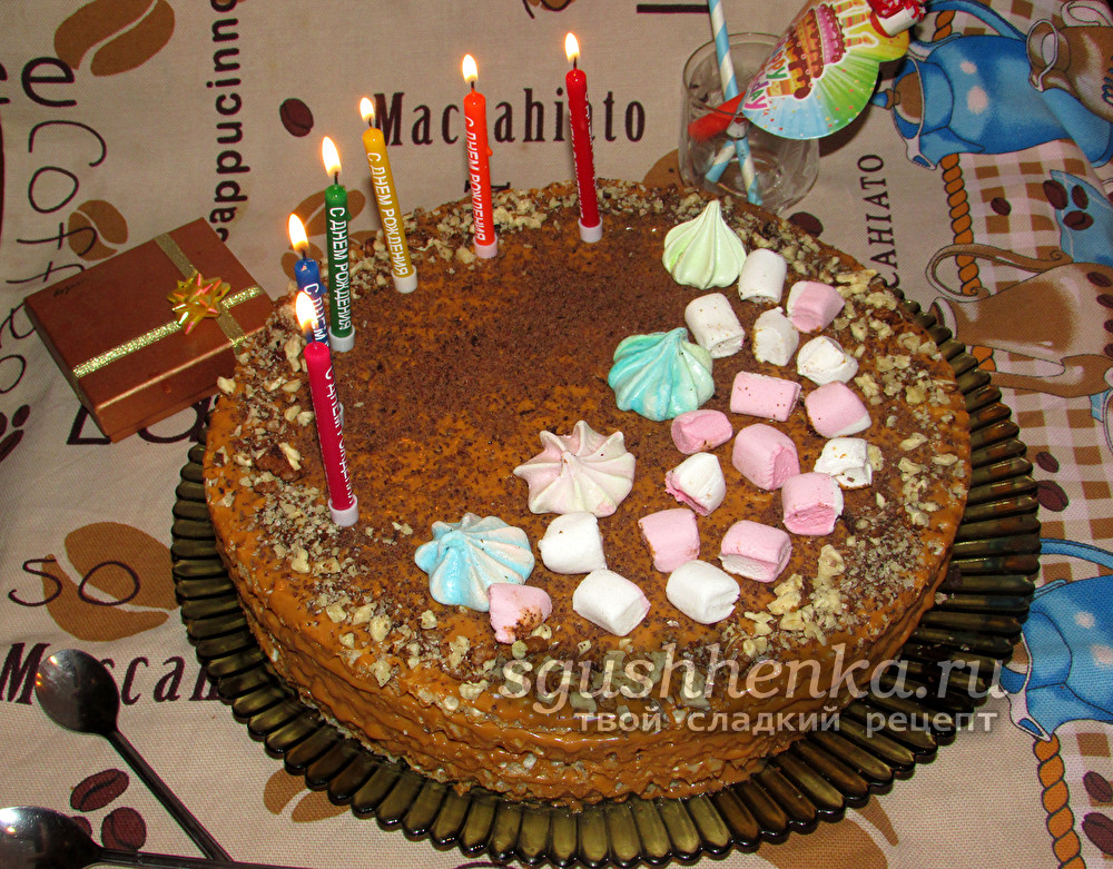 Самый простой торт из готовых вафель с бананом и орехамиДумаю, что не найдется ни одного советского ребенка, который бы не пробовал или хотя бы не слышал об этом шедевре кулинарного искусства. Торт из вафельных коржей со сгущенкой и бананами по рецепту с…